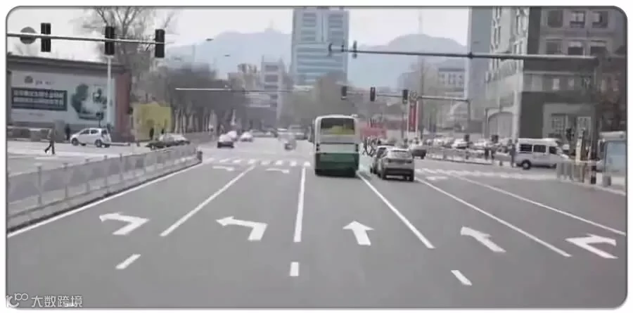 3.最左侧车道为直行线且没有左转车道标志时不能掉头。一般接近路口处,各车道内会画箭头引导机动车按行驶方向进行车道选择,而最左侧第一条车道如果只有直行箭头,此时即便没有禁止掉头的标志也是不能进行掉头的。