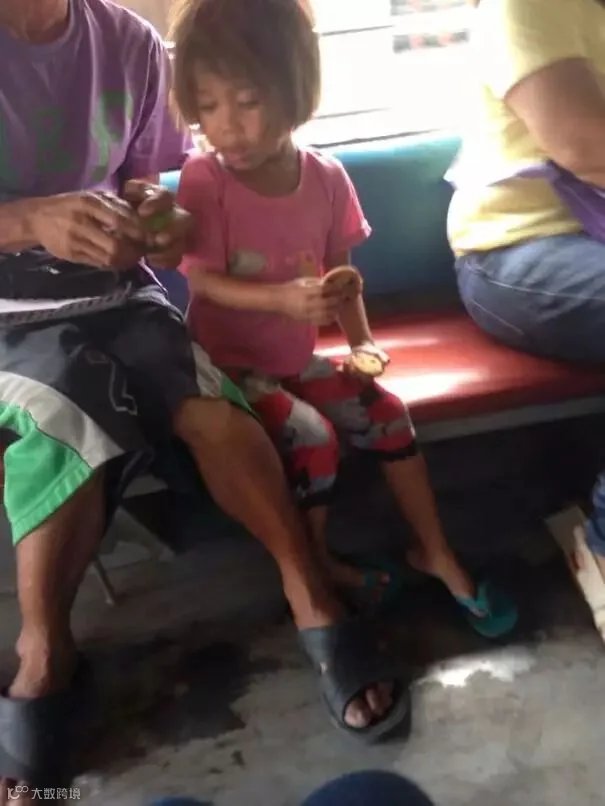 我女儿Trisha把自己的曲奇送给这位公交车上乞讨的小女孩。▼▼