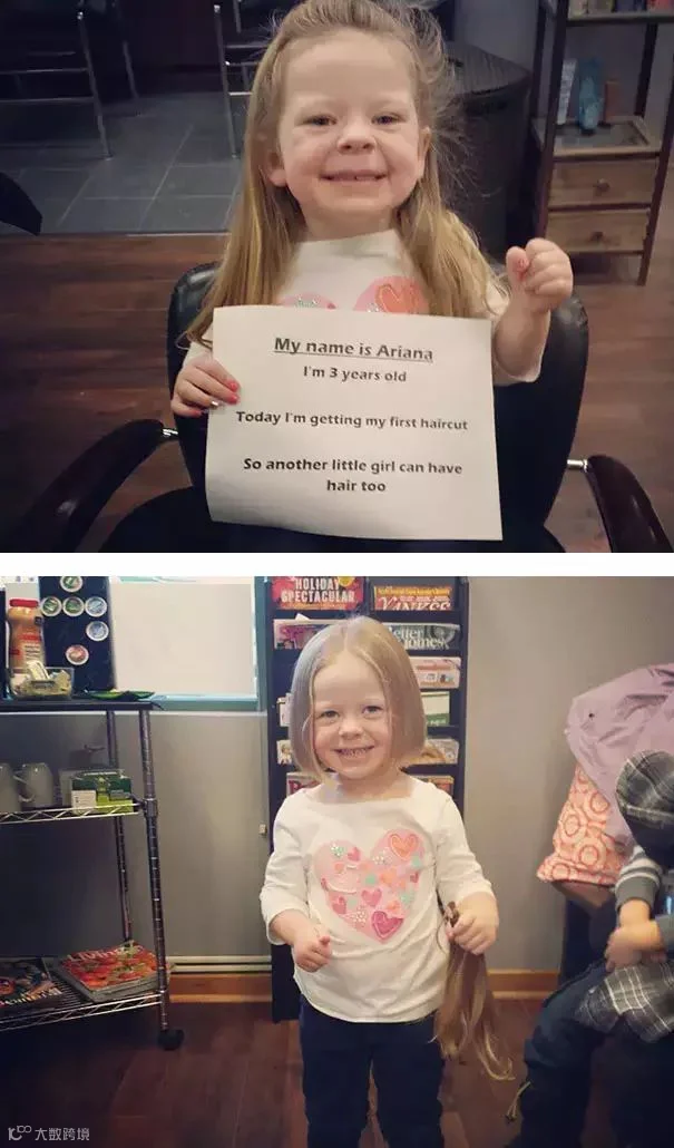 我三岁的女儿看到一个没有头发的女孩问我她为什么是光头。我向女儿解释说因为化疗让她的头发掉光了。然后女儿说:“她可以用我的头发。”▼▼