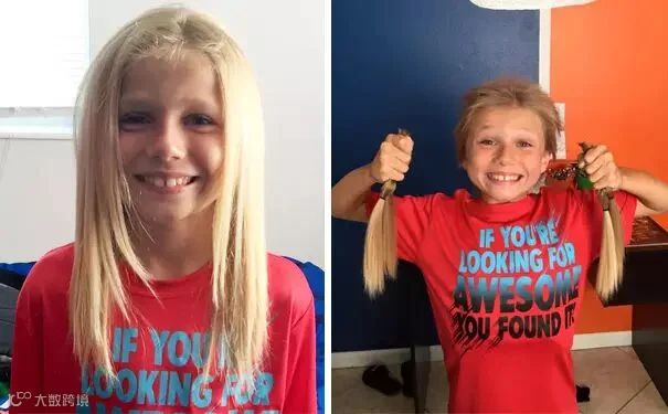 八岁小男孩蓄发两年只为将秀发捐给因接受化疗而失去头发的儿童。▼▼