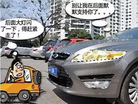 车语:大灯闪一下表示同意,大灯连续闪数次表示不同意。