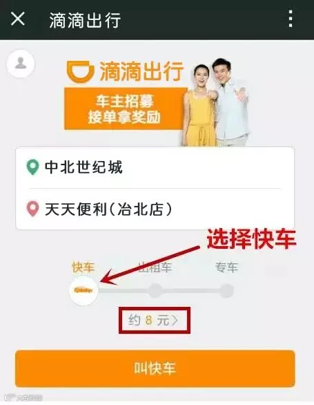 2选择快车,输入目的地