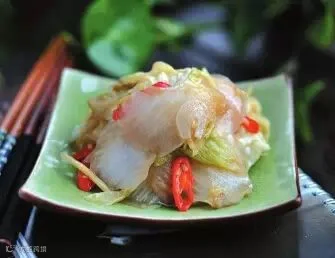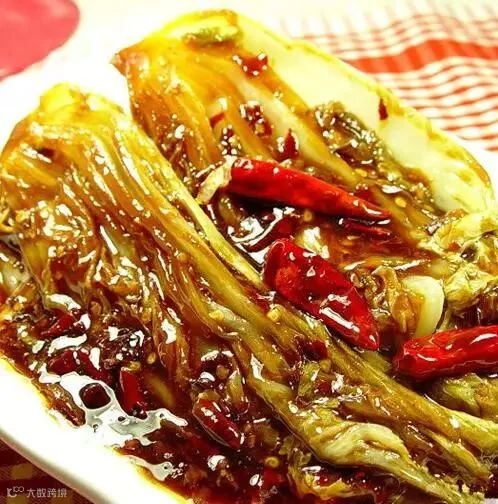 11)腌渍好的泡菜,浇上一点辣椒油吃起来味道酸辣开胃。