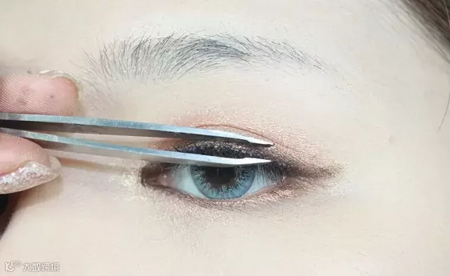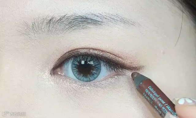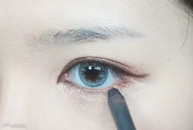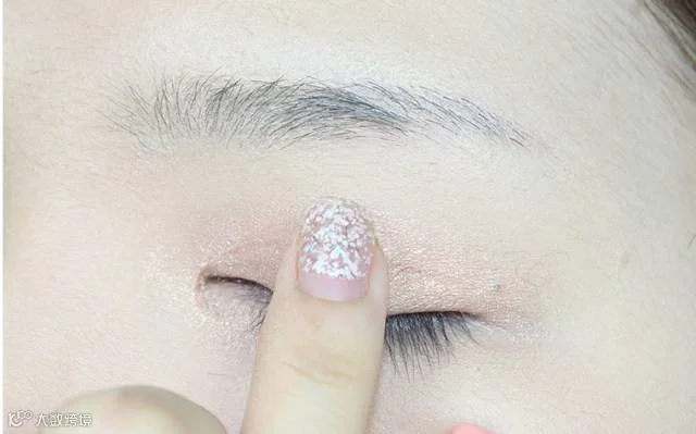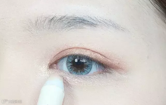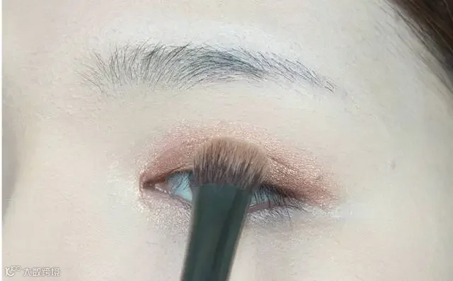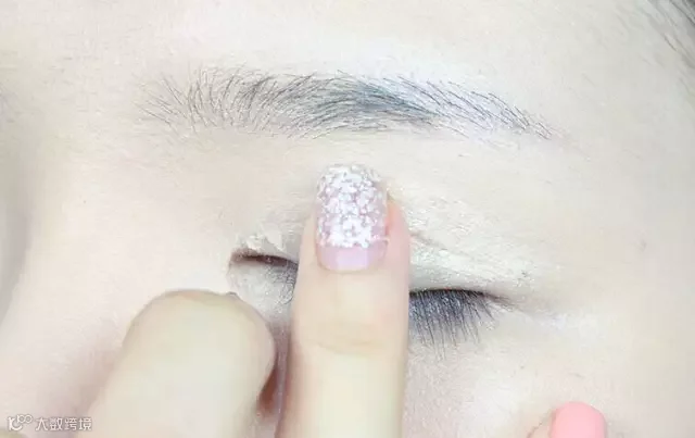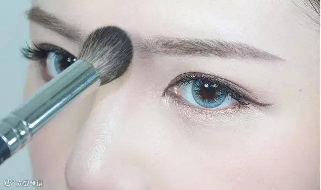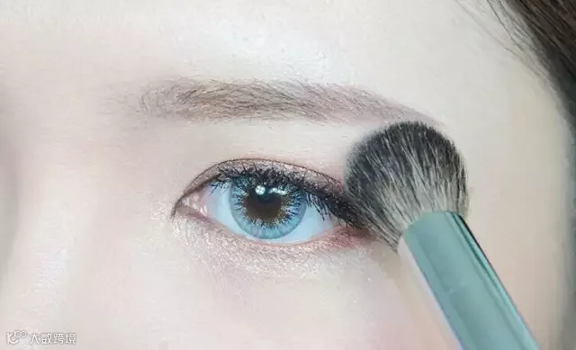 眼影用淡色米粉~均匀涂满整个眼窝~