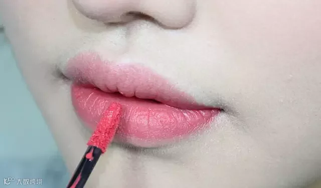 用粉底液给嘴巴周围轻轻遮瑕~咬唇妆就画好了~