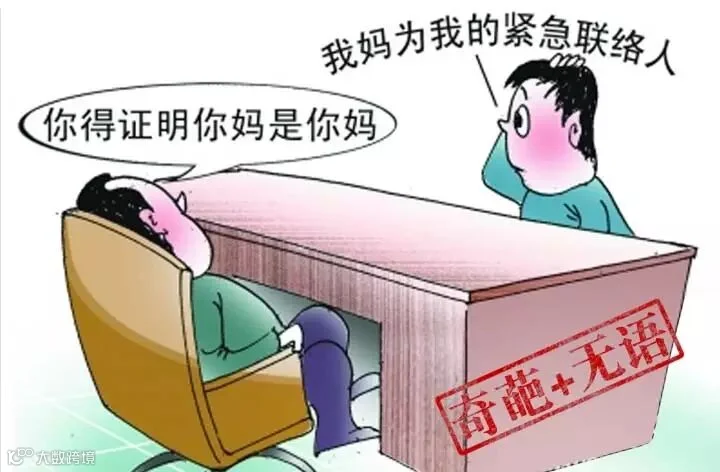 4月,陈先生要出国旅游,需要填写紧急联系人,填写母亲名字后,有关部门竟要求他提供材料,证明“你妈是你妈”有权任性,让人无语凝噎。