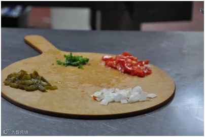 Step1:洋葱、小番茄、香菜和墨西哥青泡椒,切碎丁