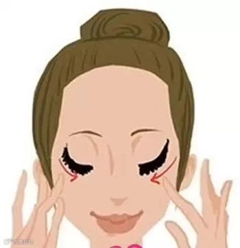 用无名指按照箭头所示方向,对从下眼睑到上眼睑的曲线进行提拉,此动作需要重复5次,且方向不可颠倒,因为这是有助于提拉和紧致眼睛皮肤,有效防止松弛,对抗老保养来说是必不可少的。