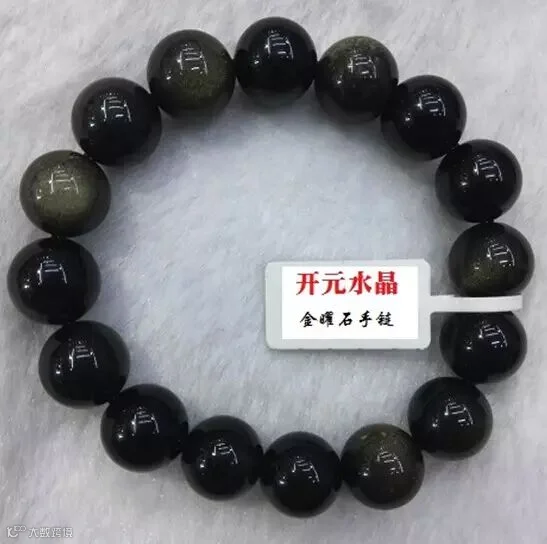 金耀石融合浓郁的黑色和金沙使其能量大大增强。金曜石的“眼”是金色的,像一层金沙,从珠子的内部散发出来,异常耀眼。金曜石是所有宝石中最具招财和辟邪功效的宝石,金曜石与是和黑曜石系出同宗,其金色沙眼热情奔放,闪耀出金子的光芒,被称为招财新宠。
