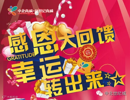 【感恩大回馈】中北商城、新世纪商城12月,幸运转大奖,100中!