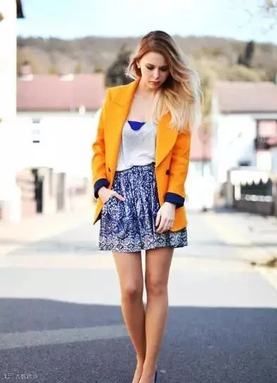 主要采用的方法是,用撞色法来搭配上下半身,冷色配暖色,或是用来搭配内外,比如打底衫与外套。鲜明的色彩搭配这种方法的好处会给人轻快而又朝气的感觉,想打造别致造型,可以试上一试。但要注意色彩最好在两种左右,且色彩的面积不要1:1。