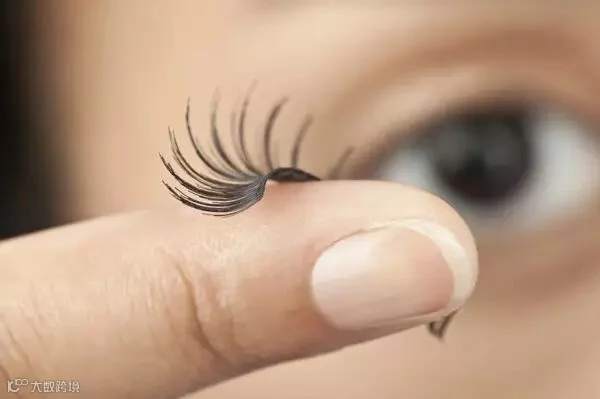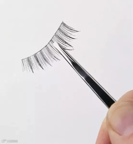 先找准眼头的位置,将假睫毛一端对准眼头的位置;再粘中间的部分,在这个阶段停留一会让胶水发挥效力;最后将眼尾的部分整理好。