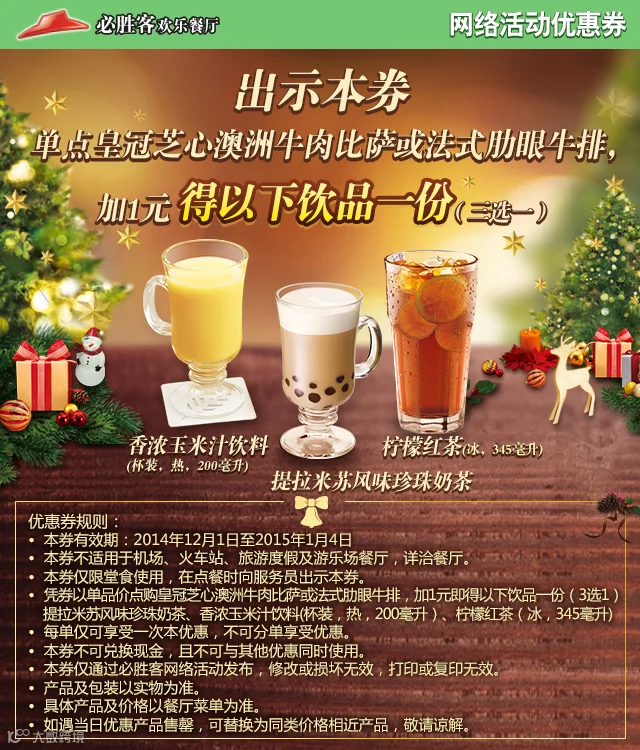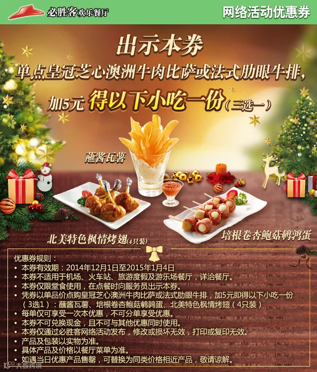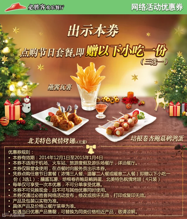 导读:寒冷冬季,需要一点暖意来让自己的心情温暖起来~ 必胜客‘中北世纪城店’精选四款节日美食优惠,邀您一起共享温馨