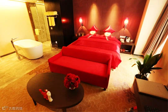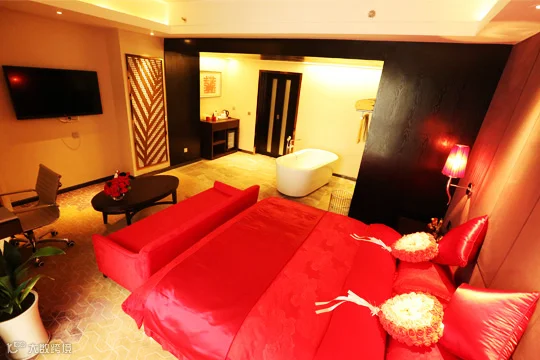 洞房花烛夜少不了浪漫的点缀,房间以传统中国红为主色调,新人喜鞋、梳妆台、桌子、香槟酒杯旁,浪漫在房间里随处可见,另外还在房间配备浪漫浴,将日常沐浴转变成极致享受的水疗体验,浪漫无边。除了这些,酒店给新人准备更好的是舒适的睡眠环境。一张柔软的婚床、床垫和保护垫,一床羽绒被,一对舒适的枕头,新人休息时,定有好梦。