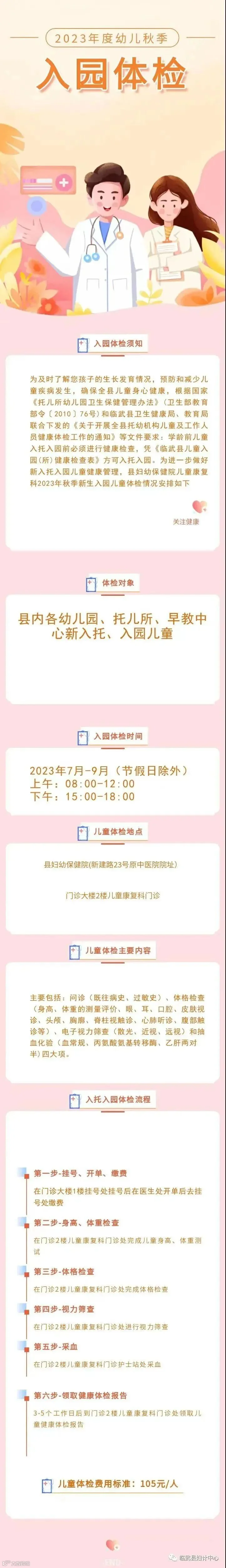 3、新生入园体检报告1份:妇幼保健院新生入园体检科