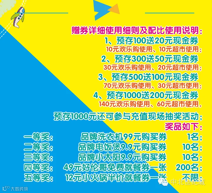 4、请到世纪城购物中心4楼欢乐购百货领取奖品。