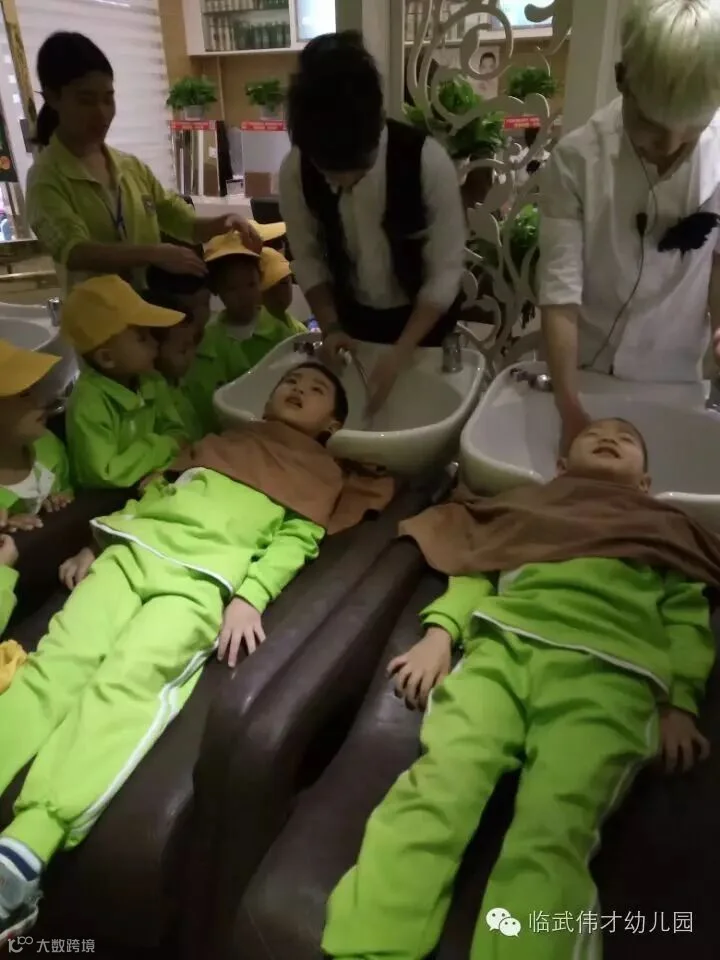 3、请多名幼儿进行洗发、理发,其他幼儿观看洗发、理发过程。