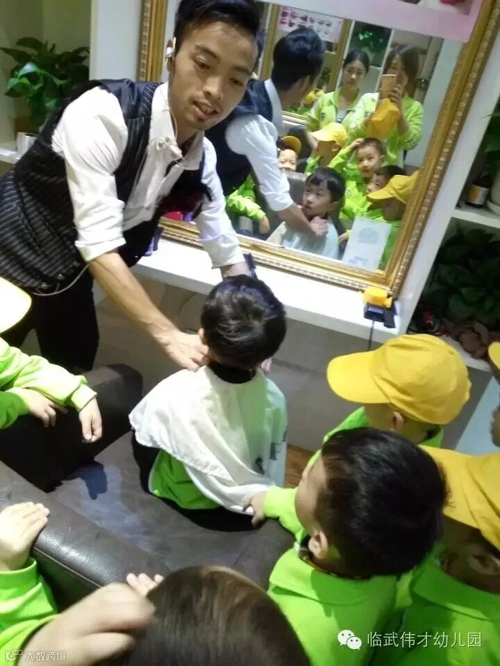 图五:孩子们正在准备体验理发环节