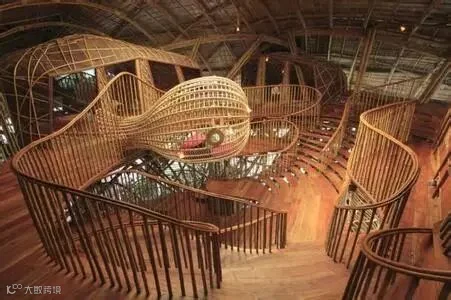 这里是一个富有童话趣味的探险乐园。建筑师在茂密的热带雨林中,建起一个充满梦幻色彩的树上童话王国是一座架空式竹框结构建筑,内部空间偌大,提供围绕学习、启发、趣味、体验理念的精彩活动。