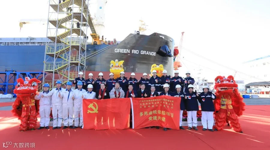 交付!船技工程监造的77000吨多用途纸浆船“GREEN VITORIA”轮在大连命名交付,是公司监造的第一艘安装脱硫塔装置的船舶,该系列船还加装了公司参与研发的“一对一”温度监测和预警系统