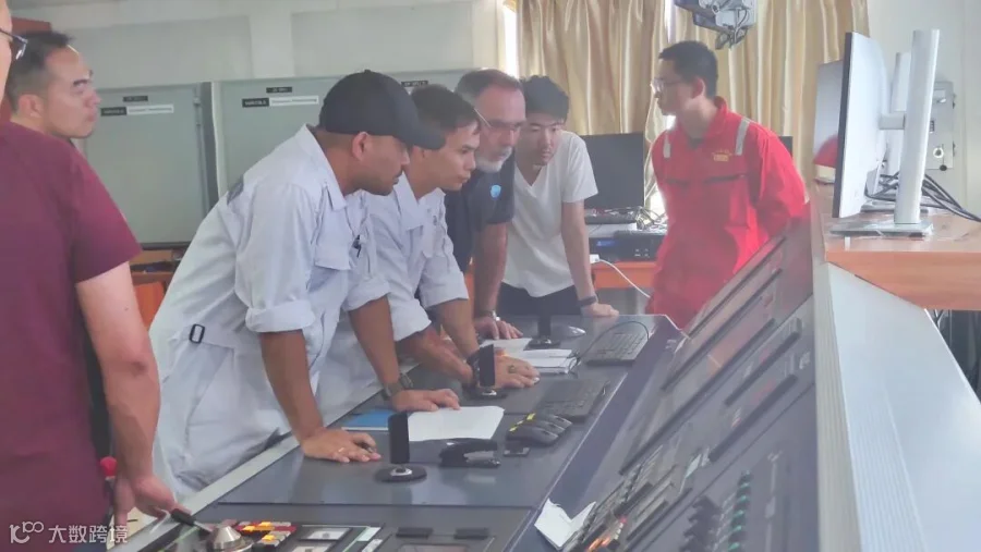 原计划四天完成的74项DP系统FMEA试验工作,由于受到逐渐逼近的台风“小犬”的影响,项目组成员、船方、第三方工程师齐心协力,一切事情以试验工作为先。早上七点吃完早餐即各自奔赴工作岗位,中餐、晚餐也是快速吃完后稍作休息就继续投入到试验之中,10月2日傍晚试验时发现的几台侧推转速指令信号问题,南高精、诺力士、瓦锡兰、西门子和ETO排查故障原因至半夜;三日晚上的试验更是全体人员加班至凌晨两点。
