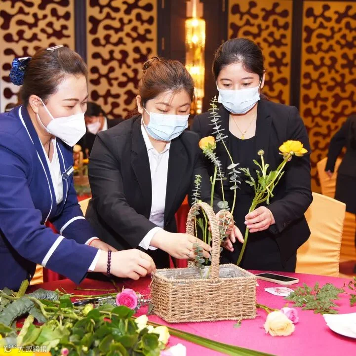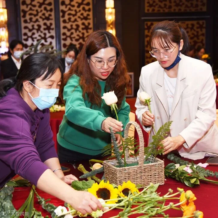 活动中,老师为大家传授插花工艺,对各种花材进行详细的讲解,并演示了插花的技巧与方法,讲解细致清晰,现场女职工们聚精会神地听着,一个个兴致盎然、跃跃欲试。讲解完后,现场的女神们分成了多支队伍开始了艺术插花比拼,从挑选花种,再到修剪枝叶、搭配色彩,女职工们用自己灵巧的双手,将挑选好的花材,错落有致地搭配在一起,用心感受着插花艺术的乐趣,现场气氛十分活跃。