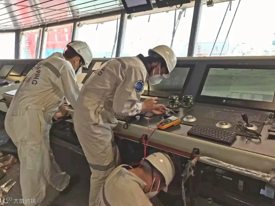 工程师秦磊磊、曾武、杨勇华应船东要求,临时增加了罗经甲板通信设备天线拆卸、重新烧制底座项目,工程师们携手奋战,将所有电缆抽离后再进行重现铺设,最终于5月5日顺利完成了设备通电测试及检验,以专业细致的工作态度及高效优质的技术服务赢得了客户的认可和称赞。