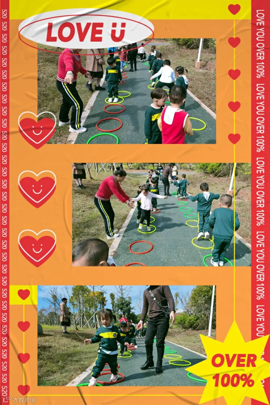 户外活动是锻炼孩子身体协调发展的重要活动,孩子们心情愉悦的在环境优美的户外进行活动,既锻炼了身体,同时也提升了孩子们对大自然的热爱。我们将致力于孩子的身心健康发展,确保每日足够的大运动活动时间,让孩子爱生命、爱自然、爱运动!