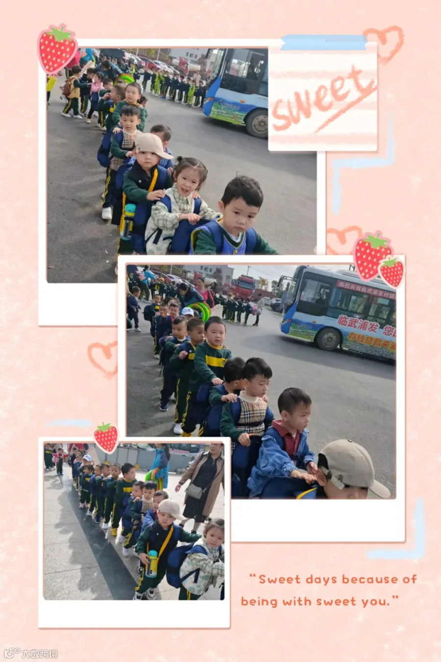 阳光明媚的秋天,我们迎着秋风,踏上林间小路,一起去户外徒步郊游!孩子们带着雀跃的心情,踏上了3个小时的徒步征程,路途中,大班的哥哥姐姐们是小班孩子们的榜样,带领小班宝贝们,不怕累,不怕苦,坚持走到目的地,成功完成了此次徒步活动。大家一起来看看我们的精彩瞬间吧。