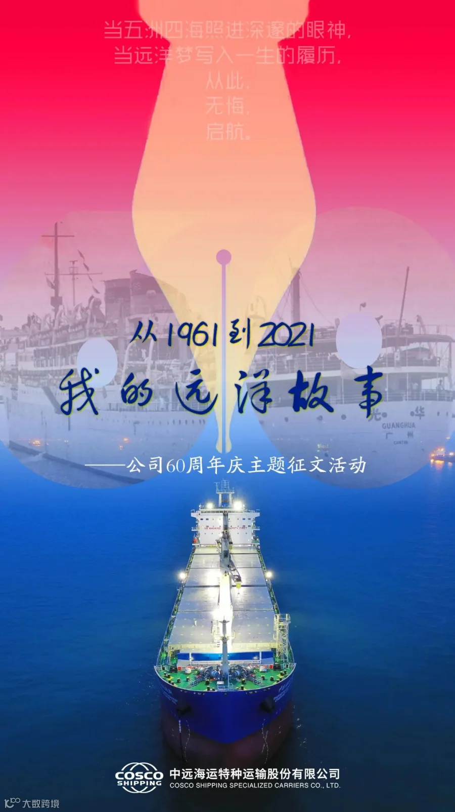 十年前,当我走出校门,踏上工作岗位,我曾以为我会吟唱着诗歌走向未知的远方,从未想过我的整个职业生涯,会与“远洋”这两个字紧密相连,成为一名兢兢业业的“特运人”。