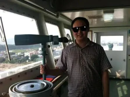 2014年,在为公司“常发口”轮供应备件时,时任船长邀请我参观了船舶的驾驶室。这是我第一次真正意义上走进一艘船舶。我对驾驶台的望远镜产生了兴趣,从望远镜里望去,数百米外的事物竟然极其清晰地展现在我的眼前——这是我从未有过的震撼!在那一刻,我不由感叹:还有什么远方比大海更远呢!