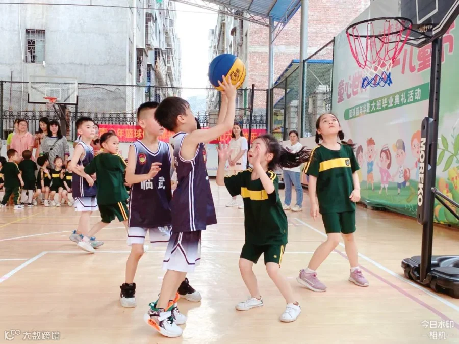 孩子们在打篮球中得到成功的喜悦,