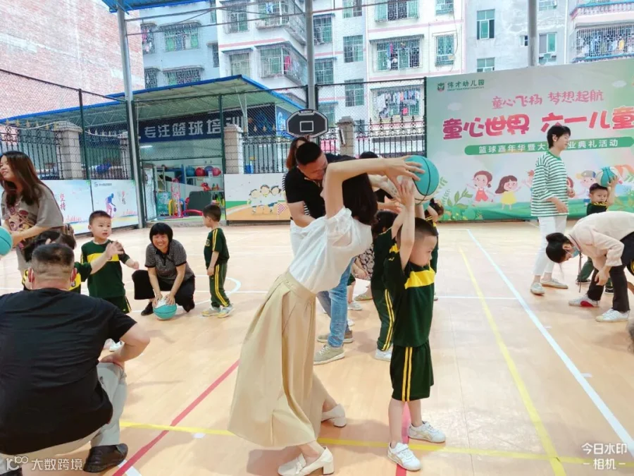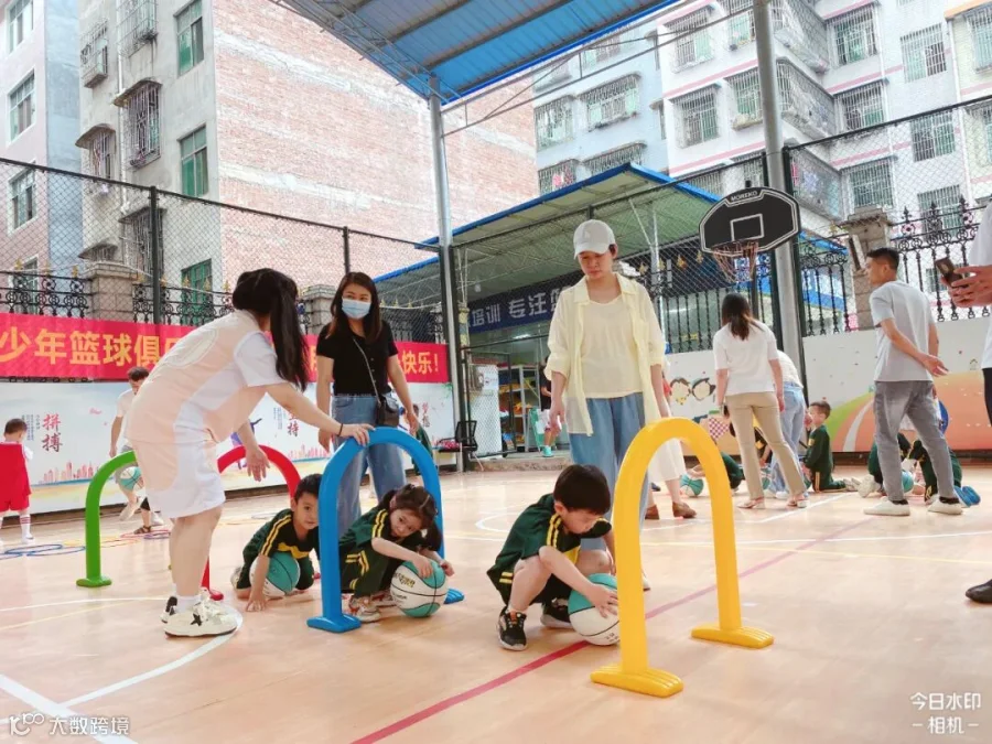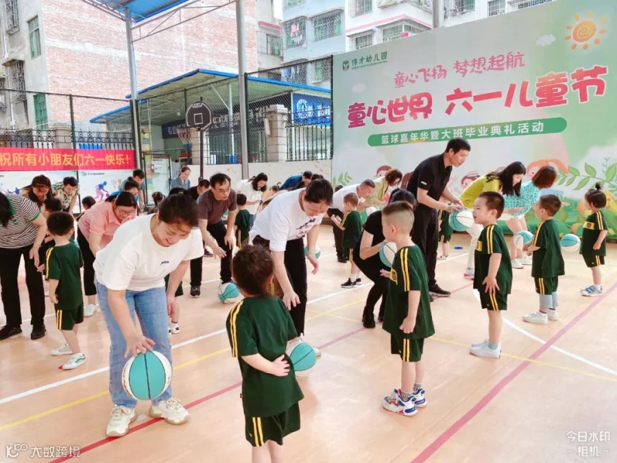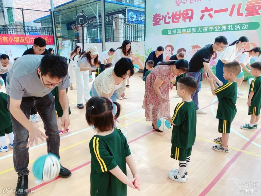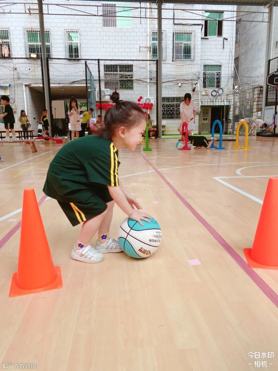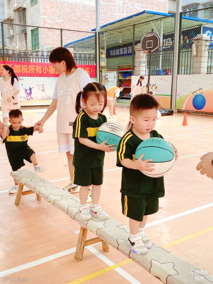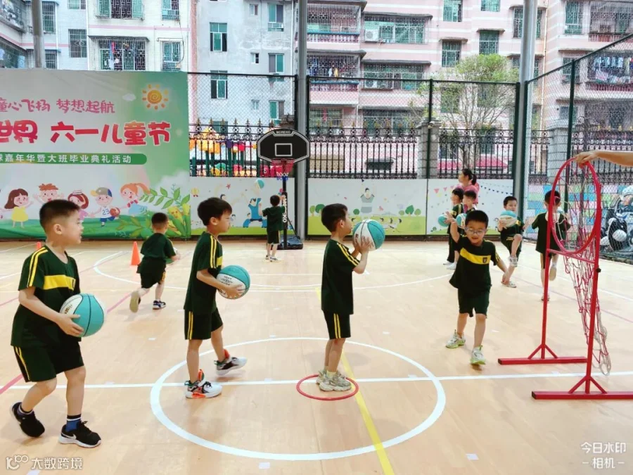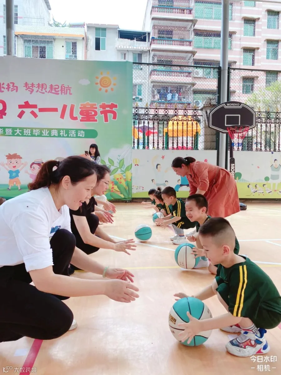 老师们将孩子们日常学习的打篮球动作进行编排和组合,