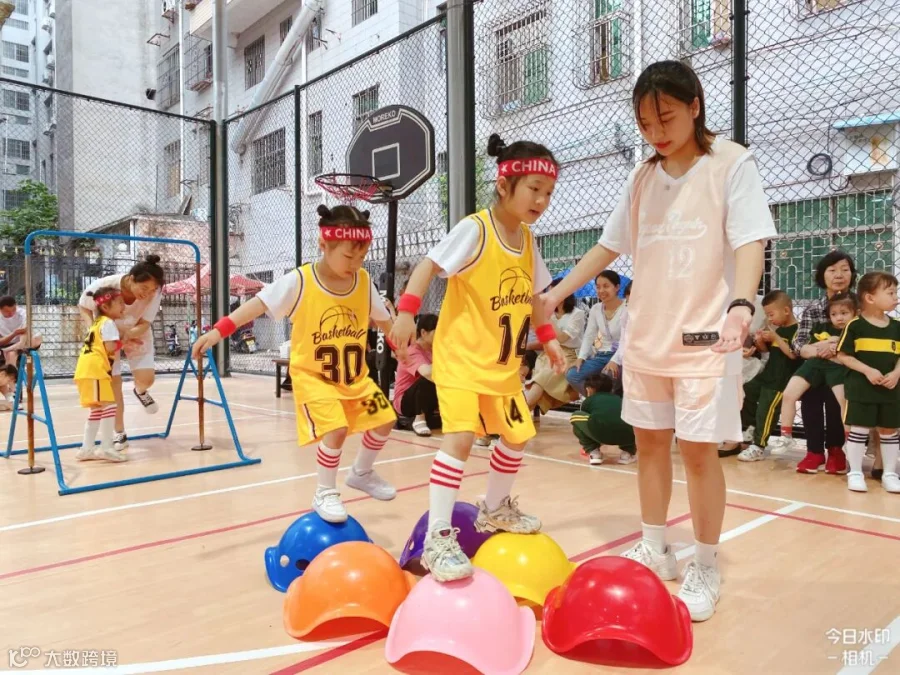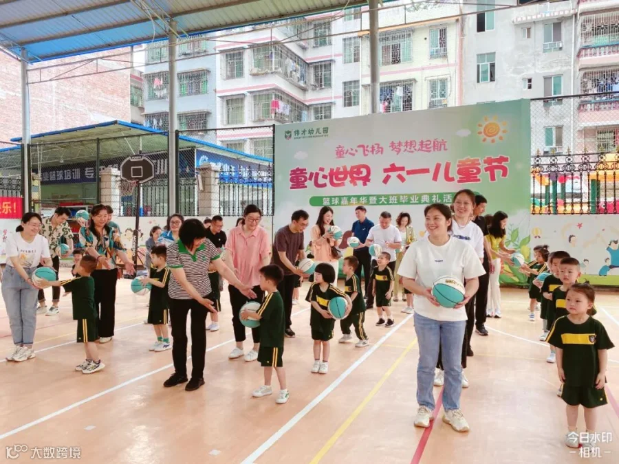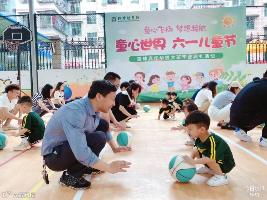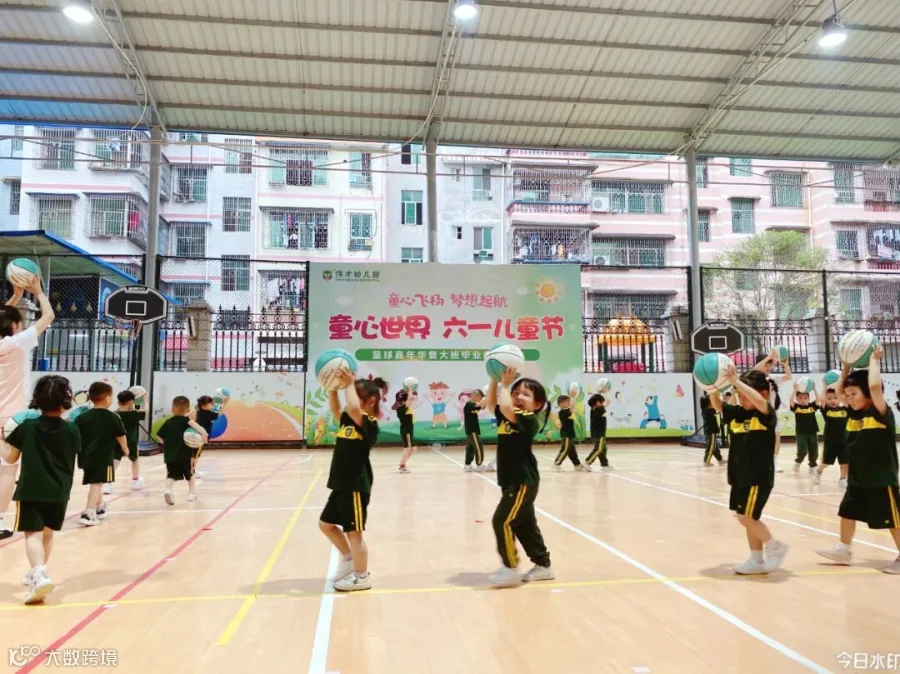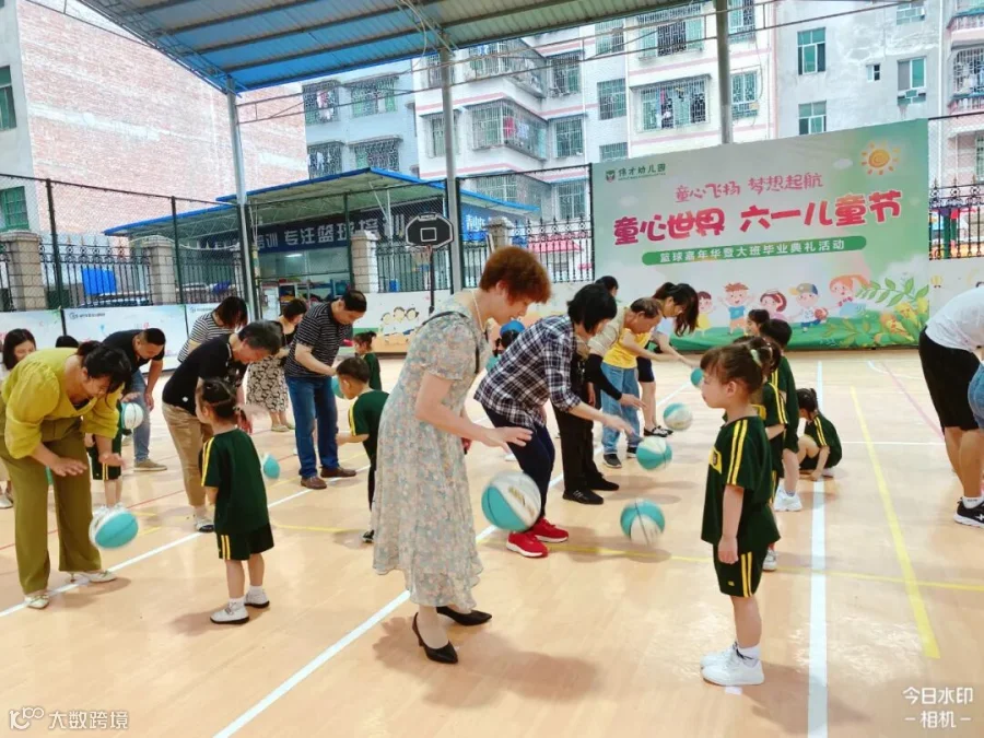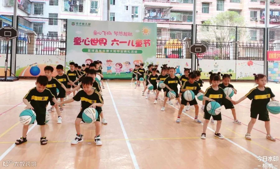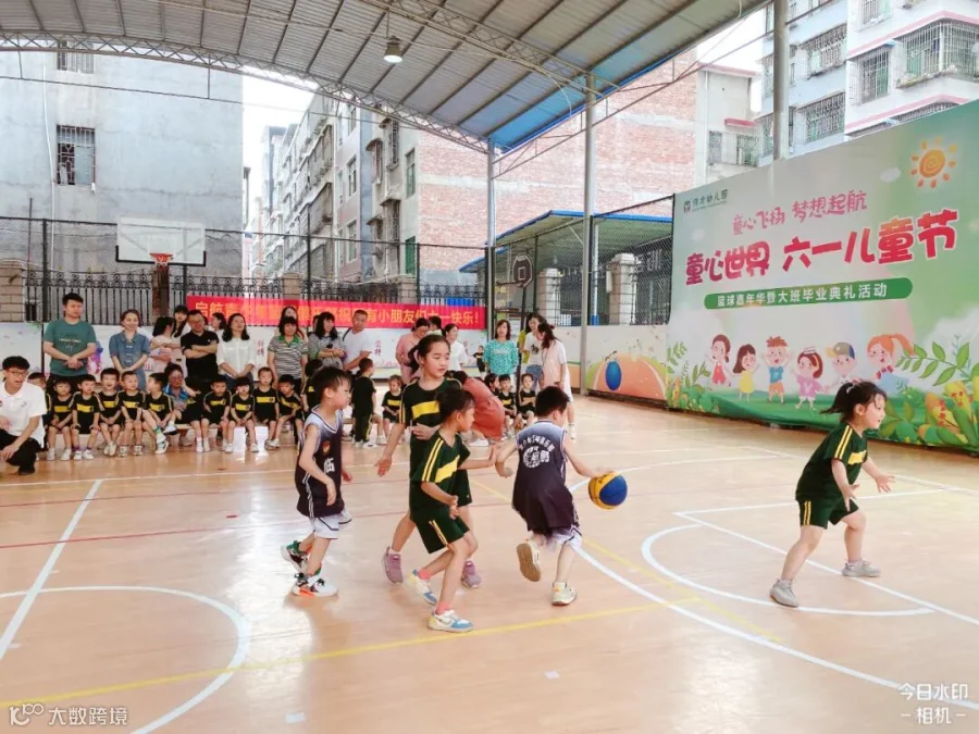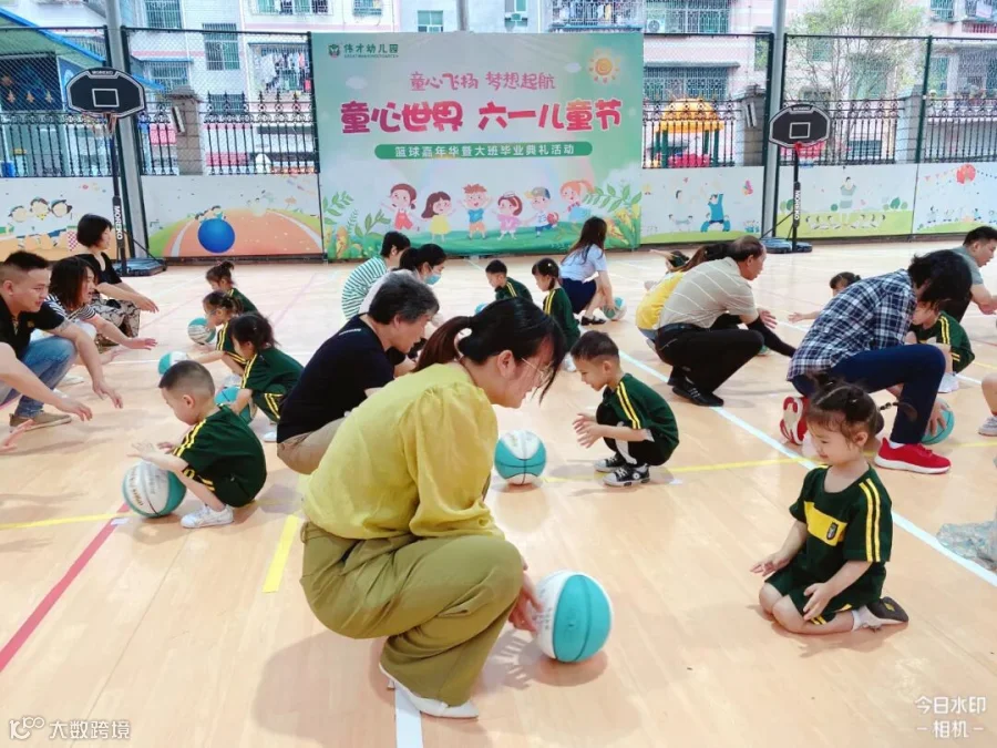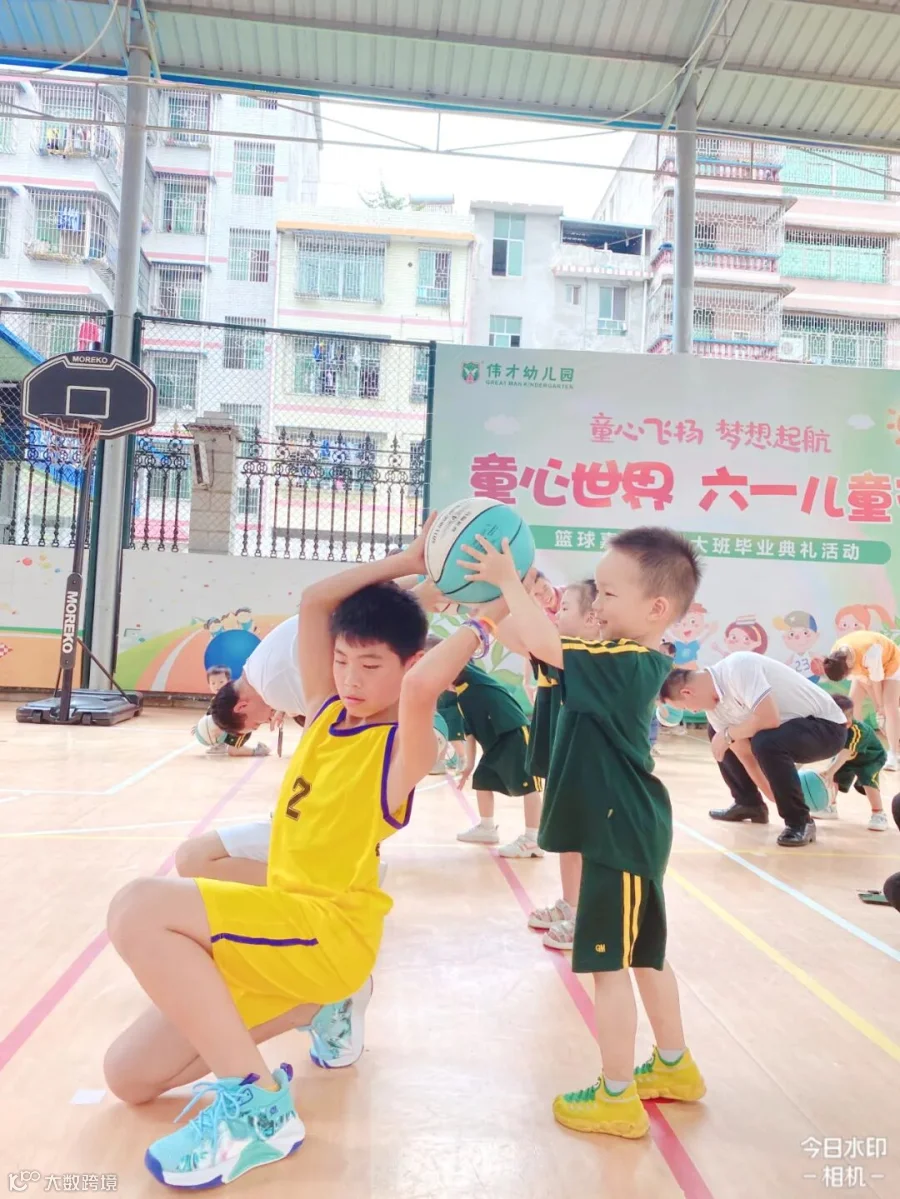 老师们将孩子们日常学习的打篮球动作进行编排和组合,
