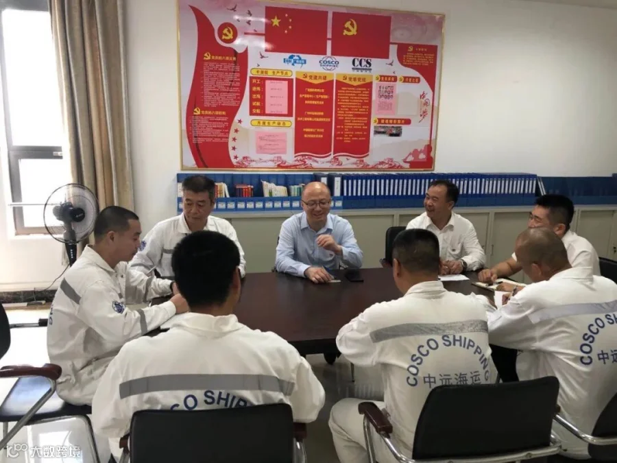 作为党建联系点,董宇航副总经理对我司船舶监造党支部高度关注。启动仪式结束后,董宇航副总经理对驻厂监造组进行调研并开展了党课学习。在党课中,对监造人员为中远海运特运新造船做出的突出贡献给予了充分肯定,并对全体监造人员提出具体要求: