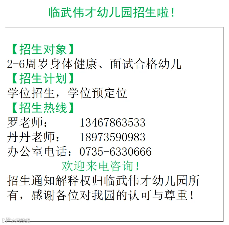 临武伟才幼儿园以教育生态为特色,培养幼儿关爱生命、学习生活、学会生存以至于学会生成,培养幼儿逻辑思维能力、探索科学文化兴趣、感知社会以及艺术表现的能力等,帮助幼儿构建自信、自律、睿智、和谐的人格。