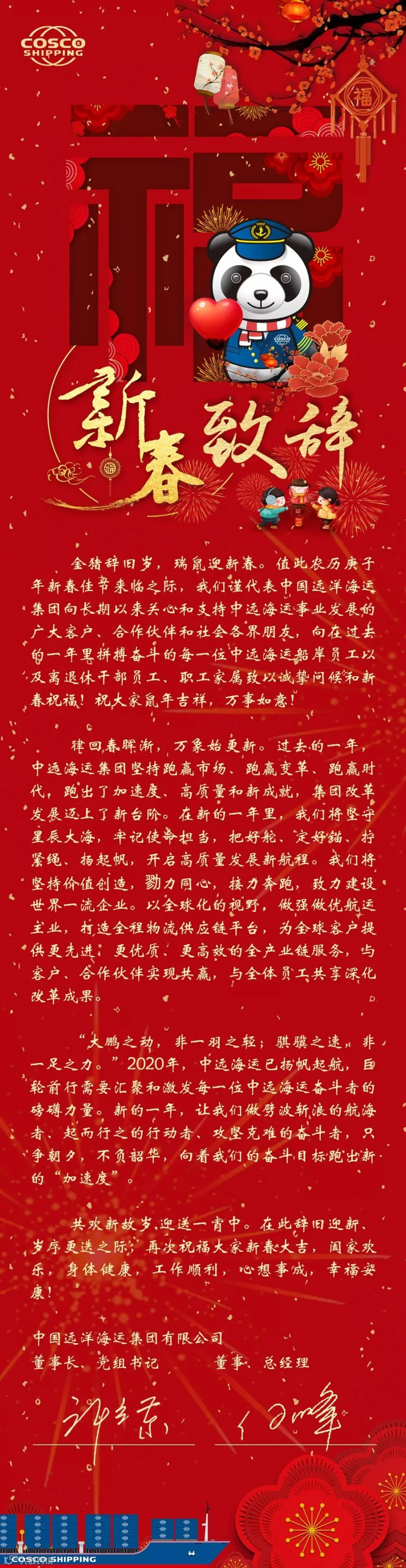 中远海运集团新春致辞