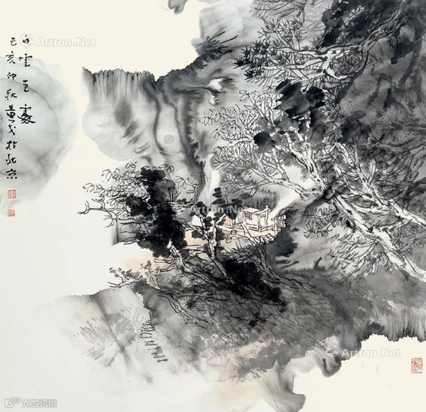 黄戈 2019年作 白云生处 镜心 设色纸本