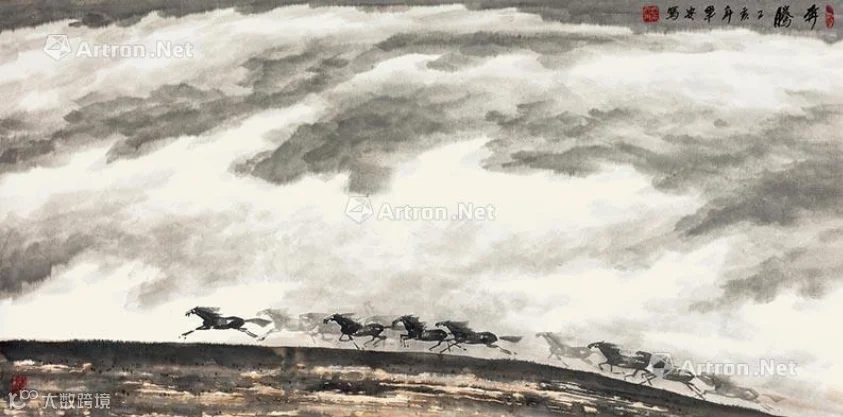 赵军安 2019年作 奔腾 镜心 设色纸本