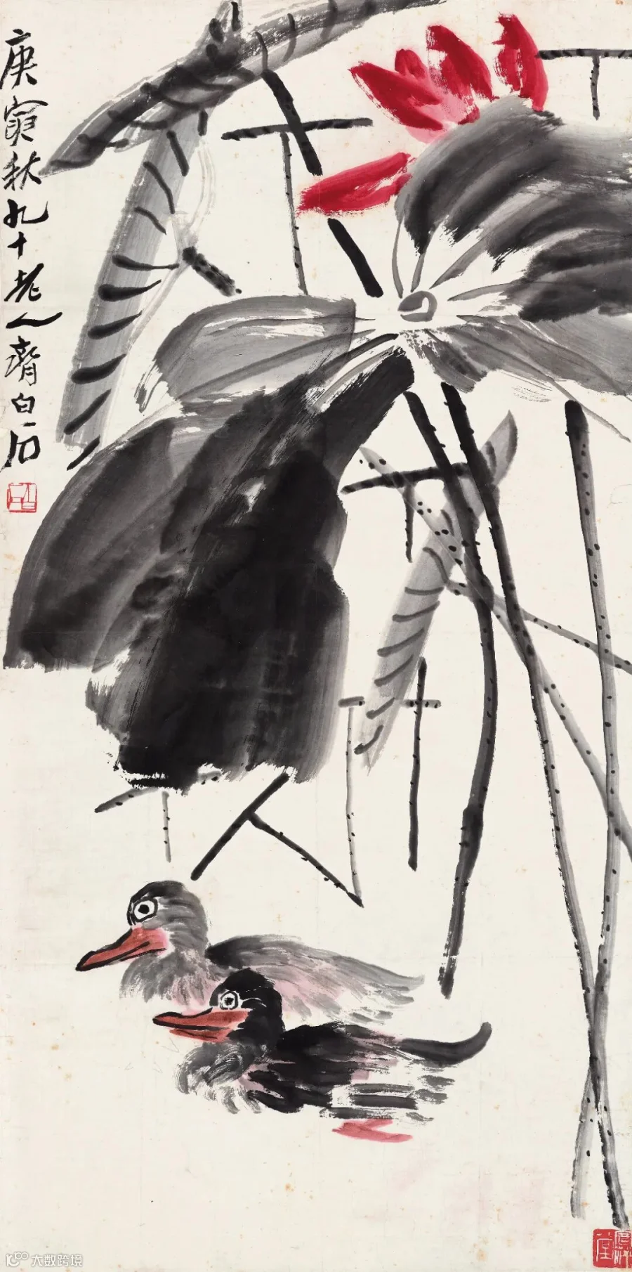 LOT 2307 齐白石 1950年作 荷花鸳鸯 立轴
