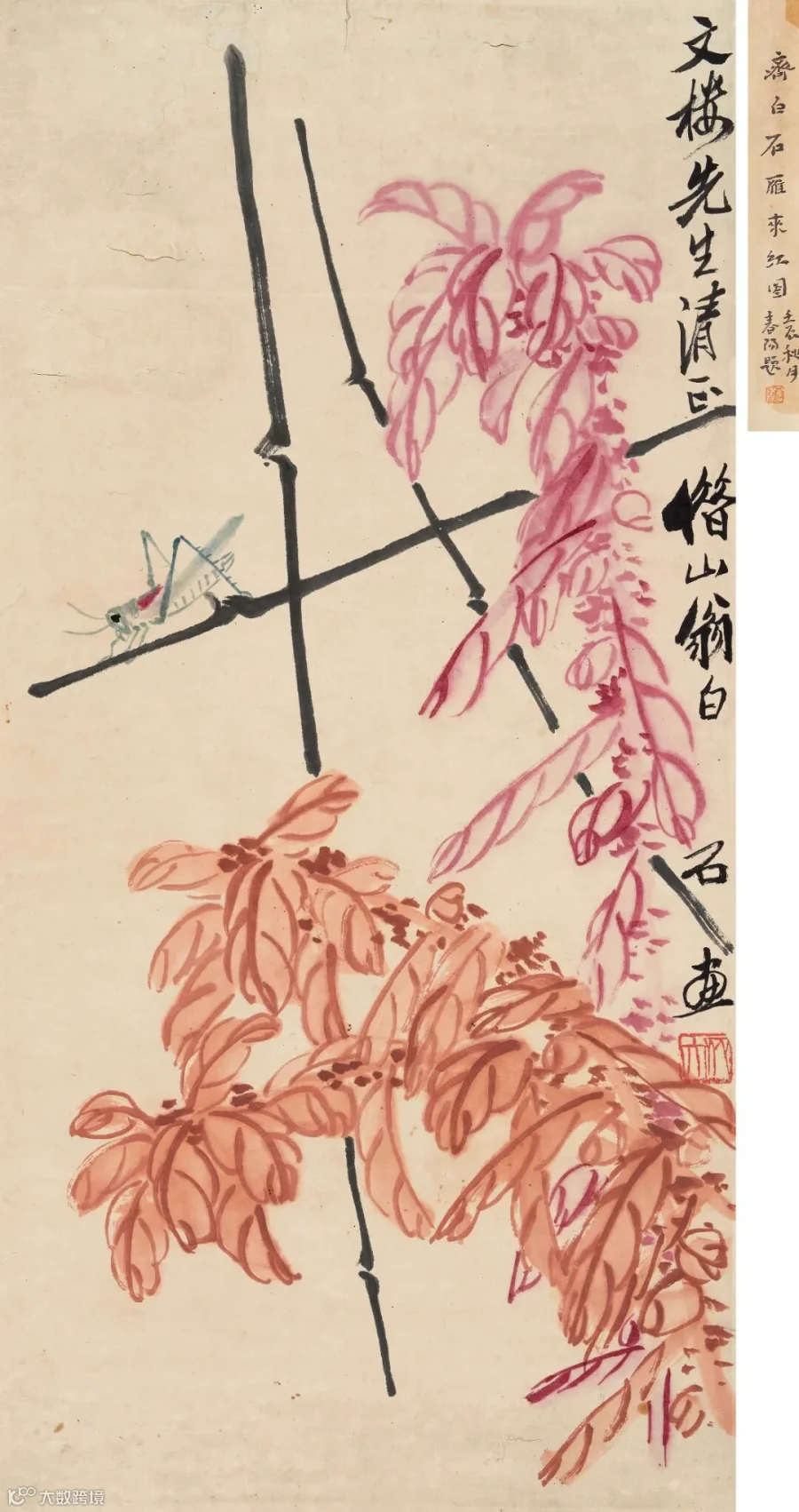 【霍春阳题签】齐白石雁来红图。壬辰秋月,春阳题。钤印:霍春阳印