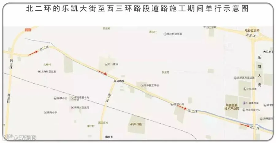 施工期间,北二环的乐凯北大街至西三环段实行单向通行,所有车辆禁止由东向西行驶,允许由西向东行驶,保定市公安局交警支队提示,自2018年5月10日起将会对违反单向通行规定的车辆进行抓拍。途径此路段去满城车辆请绕行乐凯北大街→北三环→西三环→保涞路。