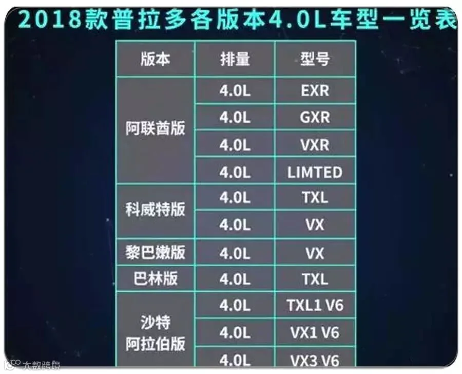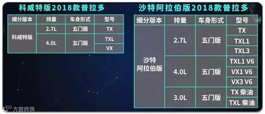平行进口到国内的2018款普拉多,以2.7及4.0L居多,但黎巴嫩版本车型却没有2.7L,只有4.0L车型,沙特阿拉伯版本车型还独有3.0L柴油发动机可以选择。