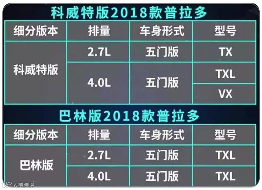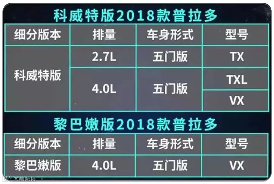 不同版本的普拉多配置不同,车型的型号名车也不同,一般都在尾门的右上角有着明显的标识!