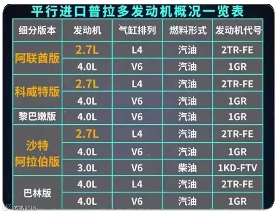 说了这么多,那么2.7L和4.0L的普拉多又该怎么去区分是哪个国家版本的呢?