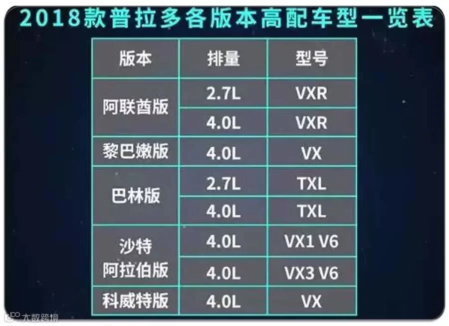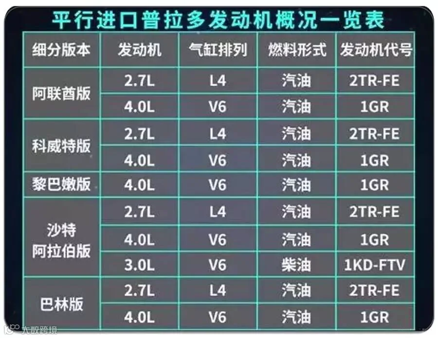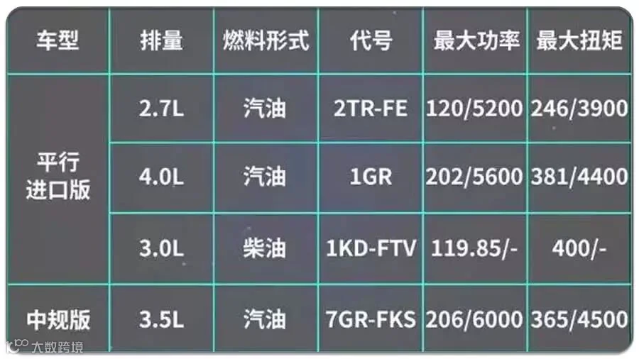 在这里提示一下,2018款的普拉多平行进口版本与中规版可不太一样哦!因为中规定普拉多只搭载了一台3.5L V6的汽油发动机,取消了2.7L排量车型。