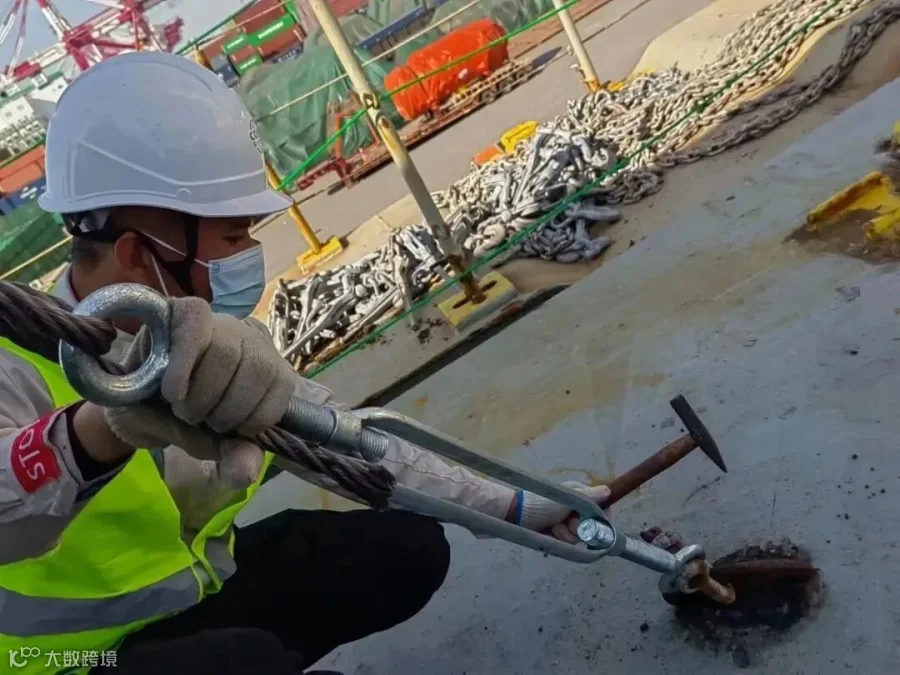 我是供应公司驻守在青岛绑扎现场的陈仁钟,我的工作是负责将货物绑扎稳妥、牢牢固定在船舶上,以下便是我日常的工作写照。敲锈锤是我的亲密伙伴,清除焊点残渣使焊接更牢固,敲铲浮锈,便于油漆和钢板的融合,提高工作效率。