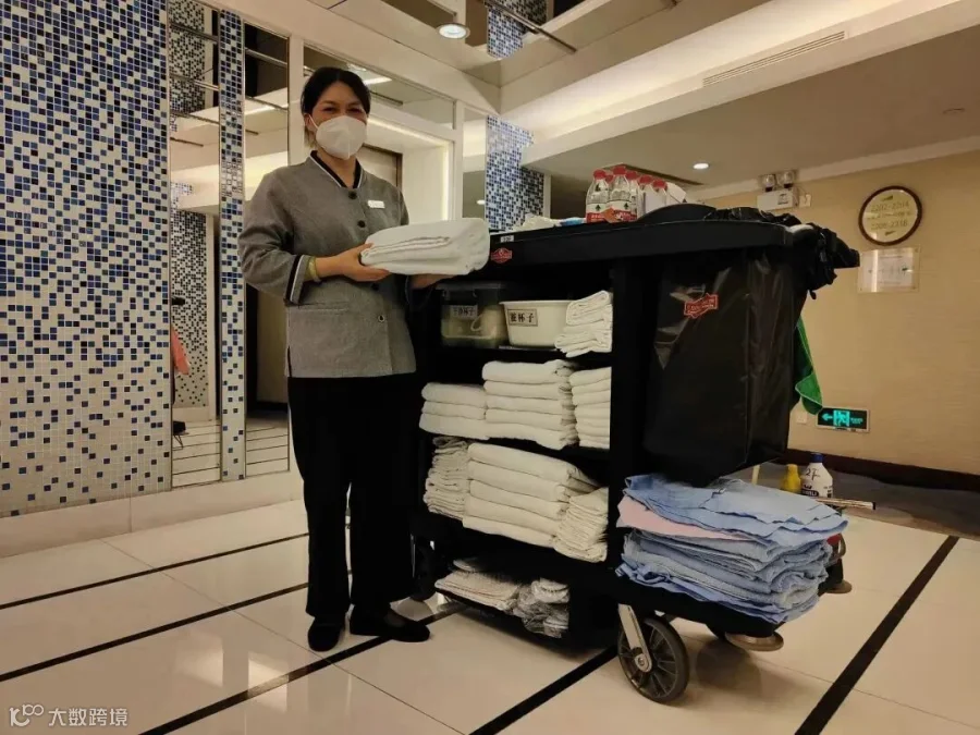 客房服务员与客房工作车