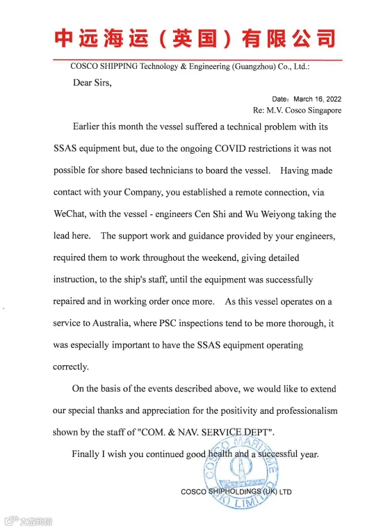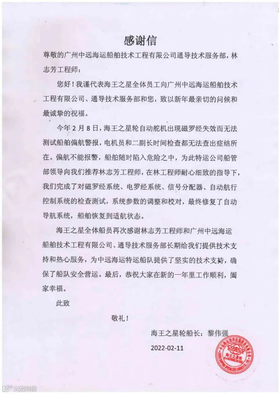 聚焦服务提升,聚力价值创造!船技工程以“服务客户”为抓手,加强客户交流对接,优化服务流程、拓宽服务内容、提高服务质量、提升技术实力、做强服务品牌,以专业、优质、及时、高效、诚信的客户服务,多次收到客户的来信点赞,有力提升了公司品牌影响力和服务创效能力。