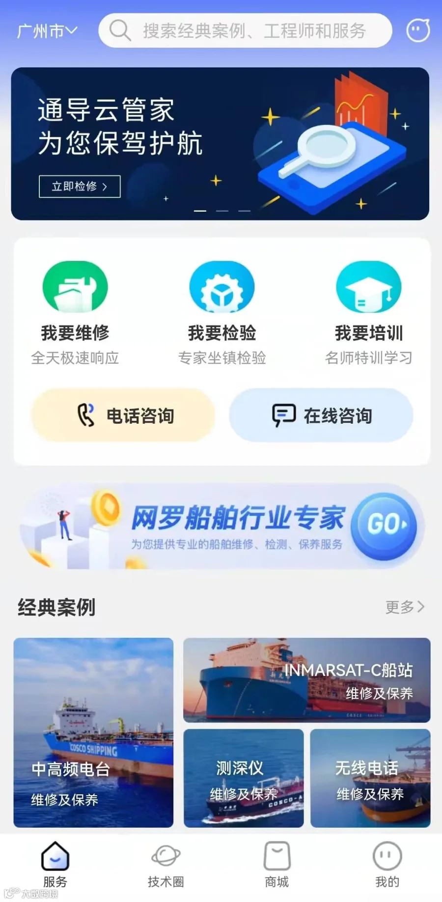 “通导云管家”APP 致力于洞察客户需求、解决客户痛点难点,打造通导服务新模式和通导技术服务生态圈。“通导云管家”APP集聚国内外最优秀的通导技术服务工程师资源、备件资源,打造全方位、一站式的,集一键报障、远程诊断、专家咨询、就近在线派单、智能检验保养提醒、全过程维修跟踪、船队通导管理、在线对账结算、售后服务于一体的船舶通导公共服务平台,为客户提供高效、及时、优质、无忧的贴心服务。